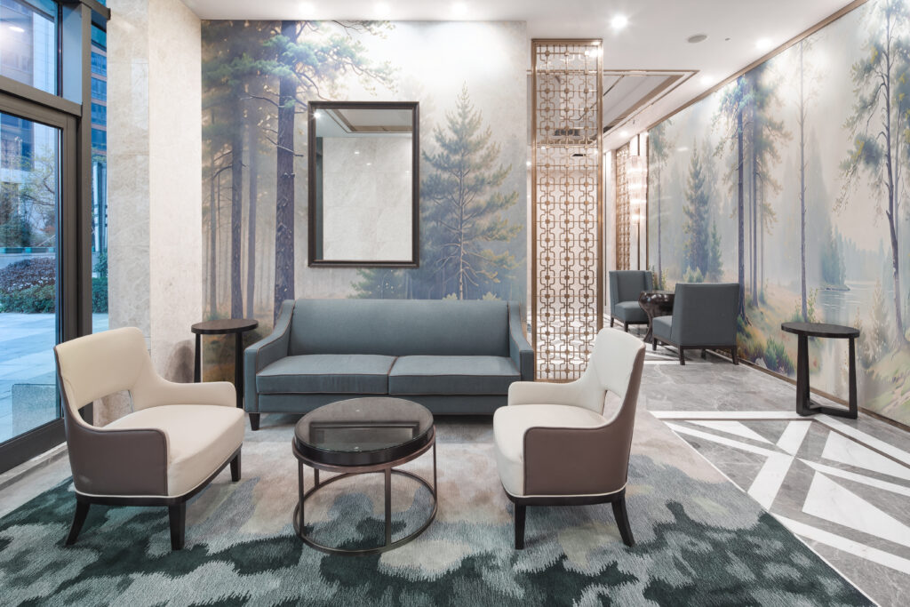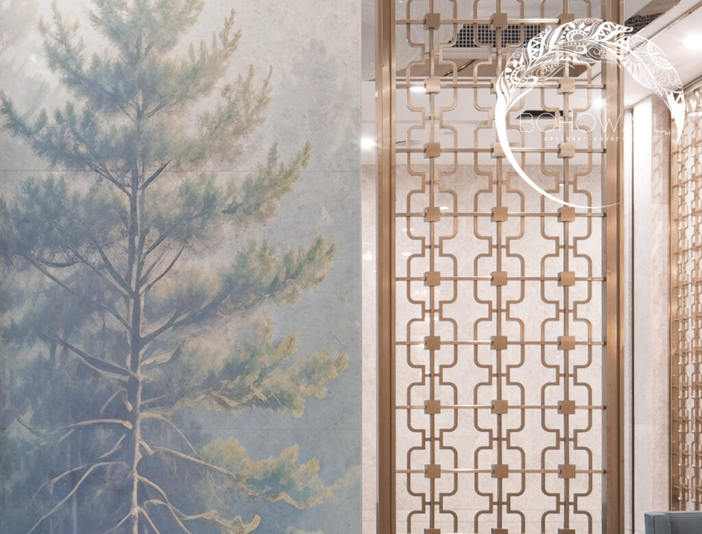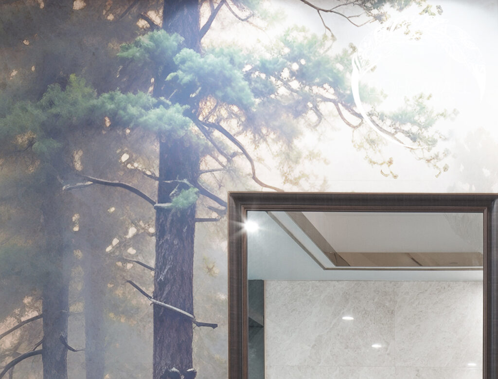В спальне эта панорама создаст атмосферу умиротворяющего кокона, погрузит в глубокий, целительный сон, будто вы спите на лесной опушке. В бассейне же эффект будет полным: водная гладь сольется с переливами на стенах, и вы будете плыть в бесконечной, живой сказке, в единении с самой сутью природы — свежей, яркой и бесконечно гармоничной.