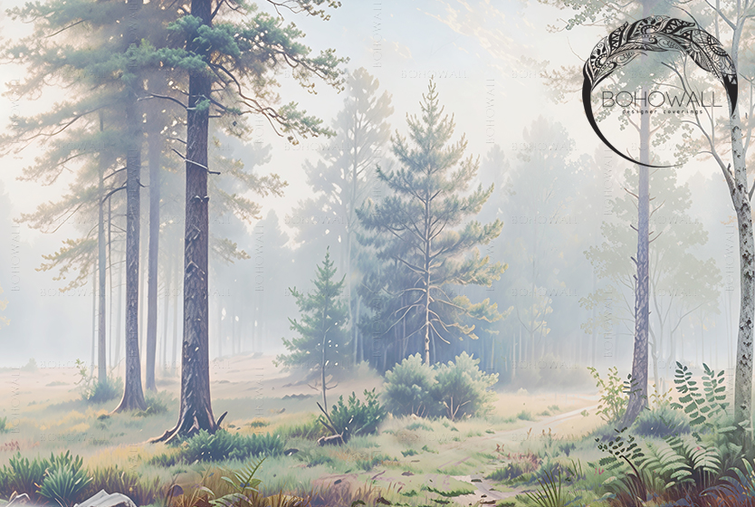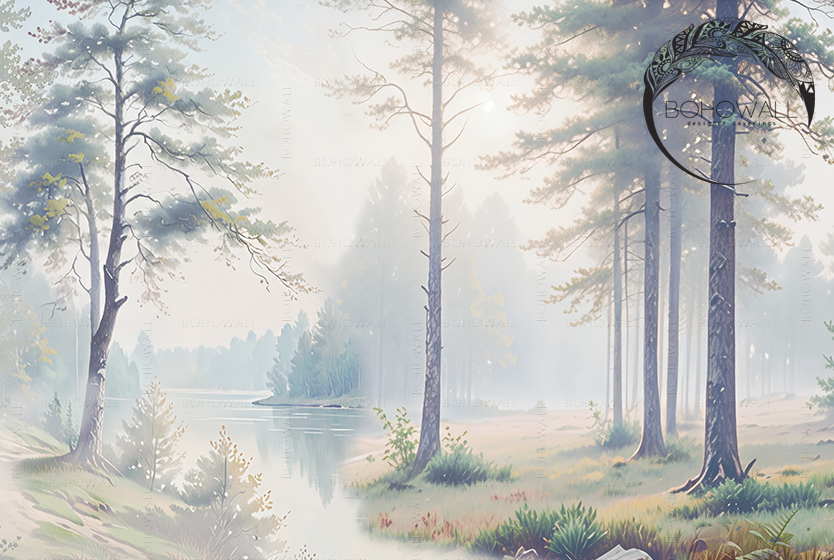 Панорама лес эти обои тренд сезона— в этой самой живой, дышащей технике акварели, в балансе между абстракцией и реализмом, в игре с глубиной и светом. Это не статичный пейзаж, а момент, впечатление, эмоция. Панорама продумана так, что, куда бы вы ни повернулись, перед вами — новая история: то лесная чаща, то солнечная поляна, то просвет к ручью с отражением неба, то заросли папоротников, написанные одним смелым, сочным мазком.
