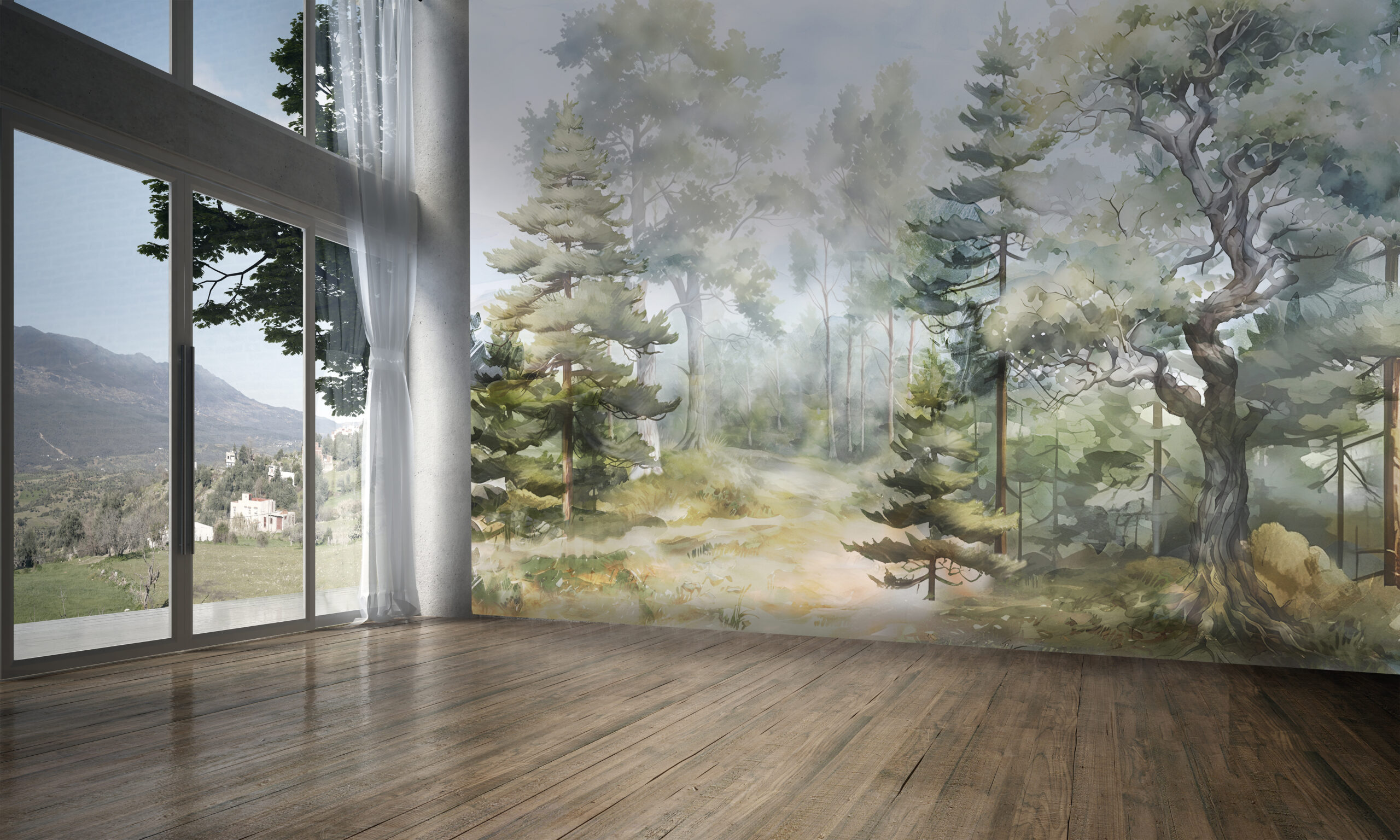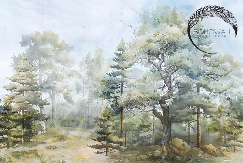 Обои для создания уюта в спальне: Эти расслабляющие, медитативные обои настраивают на глубокий, восстановительный сон. Просыпаться и засыпать в объятиях такого леса — значит каждый день совершать микропутешествие, очищающее мысли.